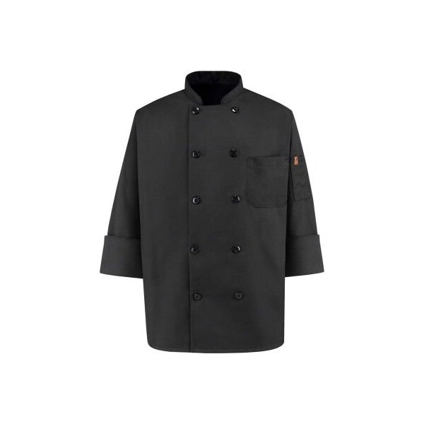 Chef Designs 10 Button-Front Chef Coat, Pearl Buttons, Black, Spun Polyester, 4XL