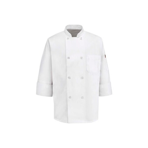 Chef Designs 8 Button-Front Chef Coat, Thermometer Pocket, Pearl Buttons, White, Poly/Cotton, M