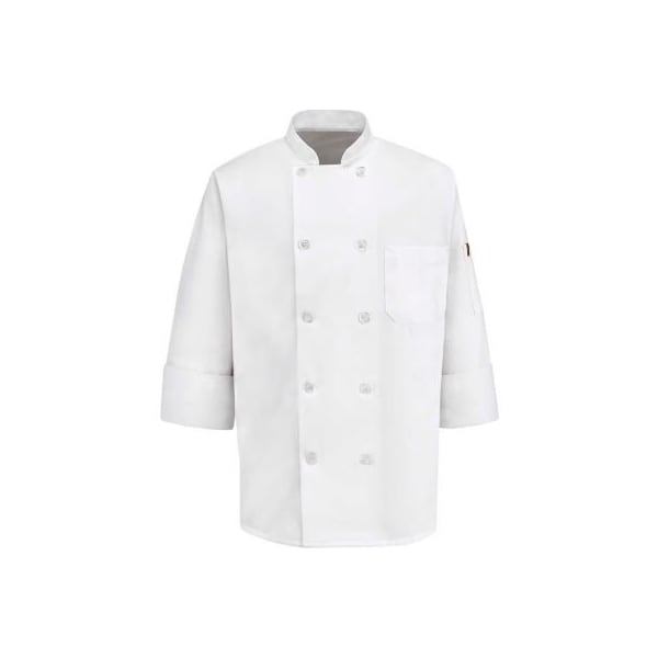 Chef Designs Men's 10 Button-Front Chef Coat, Pearl Buttons, White, Polyester/Cotton, M