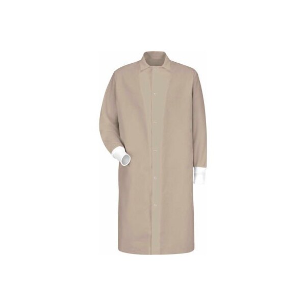 Red Kap Gripper-Front Butcher Coat W/Knit Cuffs, Pocket-less, Spun Polyester, Tan, L