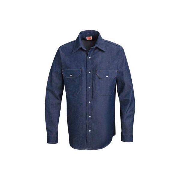 Red kap men's deluxe denim shirt long-m sd78-sd78dnlnm western style gets tougher with this heavyweight, cross-functional denim shirt. Fine weave denim, pearlized snaps and contrasting topstitching treatment keep things clean and tough. Six pearlized snaps plus button at neck. Banded, two-piece lined with sewn-in stays and topstitching. Two large pockets with simulated pearl gripper closures, bartacked pencil stall on left pocket.
