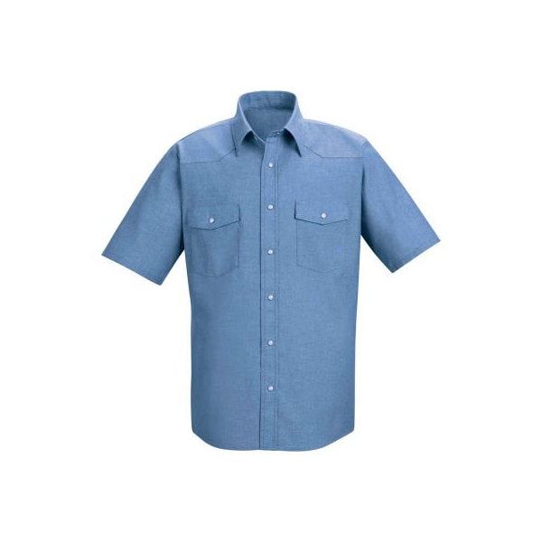 Red kap men's short sleeve deluxe western style shirt l sc24-sc24lbssl with a classic western look and updated details, this shirt comes through every time. A western back yoke construction rises to the challenge, while pearlized snaps and pocket flaps add sophistication. Six simulated pearl grippers plus button at neck. Two-piece banded, lined, sewn-in stays and topstitched. Center front pocket. Pre-cure durable press. Two spade-style pockets with functional flaps and simulated pearl grippers, bartacked pencil stall on left pocket.