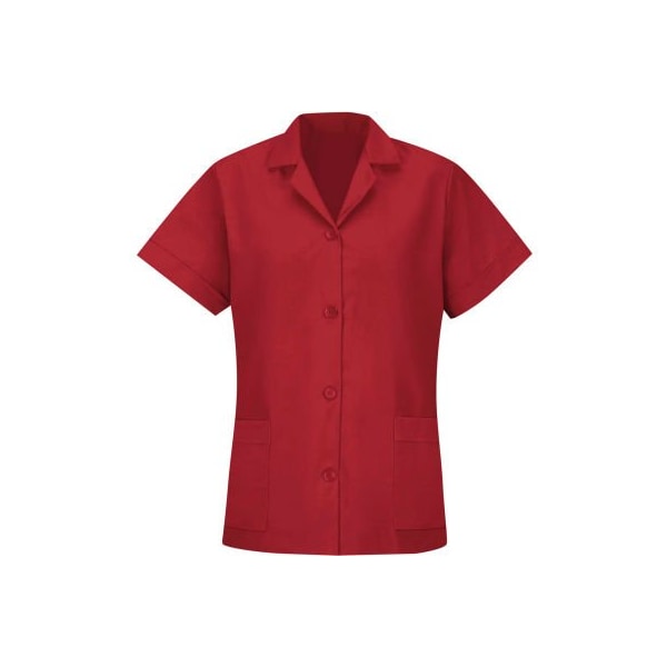 Red kap women's smock loose fit short sleeve red s - tp23 the choice is yours in this customizable smock. Five bright colors stay true through industrial laundering and two unique styles keep you comfortable on the job. Loose with short sleeves. One-piece, lined, notched lapel. Performance blend poplin. Pre-cure durable press. Two lower french-hemmed pockets.