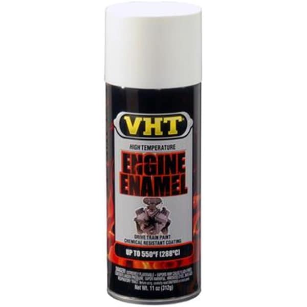 550 Degree Fahrenheit (288 Degree Celsius) Engine Enamels are available in a wide range of colors including exact match factory colors. All colors have excellent durability and superior heat and chemical resistance. They are specially formulated to withstand corrosion rust salt spray chemicals and additives of today gasoline blends and degreasers. 550 Degree Fahrenheit (288 Degree Celsius) Engine Enamels are a unique blend of urethane and ceramic resins which produce a tough and long-lasting finish for engines engine accessories or wherever a tough durable heat or chemical resistant finish is needed. Features Purpose - Superior Heat And Chemical Resistance Color - Gloss White Material Usage - Headers Engine Blocks Transmissions And Engine Accessories Container Type - Aerosol Spray Can Container Size - 11 oz.