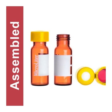Wheaton MicroLiter Amber Screw Thread Vial Kit Yellow 9mm Cap PTFE/Silicone Pre-Cut 100pk