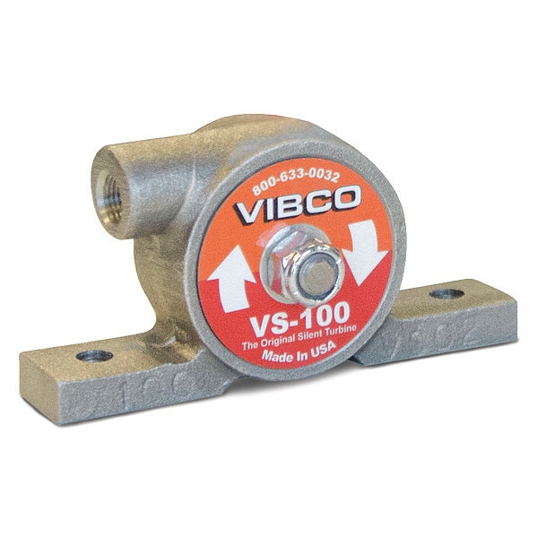 Pneumatic Vibrator, Housing Material Cast Iron, Air Flow Rate 4 cfm @ 60 psi, Maximum Force 20 lbf, Inlet Connection Size 1/8 in, Inlet Connection Type NPT, Maximum Vibration Speed 12,000 vpm, Maximum Bin Weight Capacity 200 lb, Overall Height 2.01 in, Overall Length 3.86 in, Overall Width 1.89 in, Sound Level 66 dBA, Duty Cycle Continuous, Pneumatic Vibrator Type Turbine, Force @ PSI 20 lbf @ 80 psi, Mount Type Foot, Adjustable Speed Yes, Maximum Operating Temperature 350 Degrees F