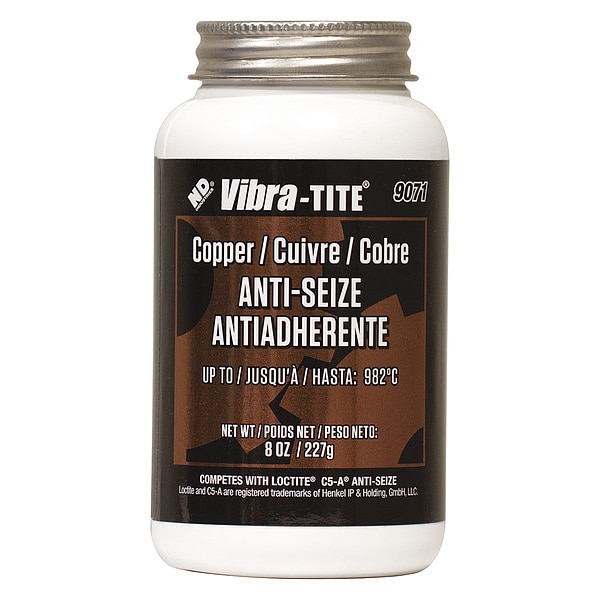 General Purpose Anti-Seize, 8 oz, Can, Copper, Paste, 9071, -65 Degrees F, 1,800 Degrees F, Vibra-Tite, Copper, Non-Flammable