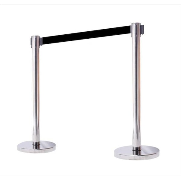 VIP Crowd Control 1109 14 in. Flat Base Mirror Post & Cover Retractable Belt Stanchion - 6.5 ft. Black Belt
