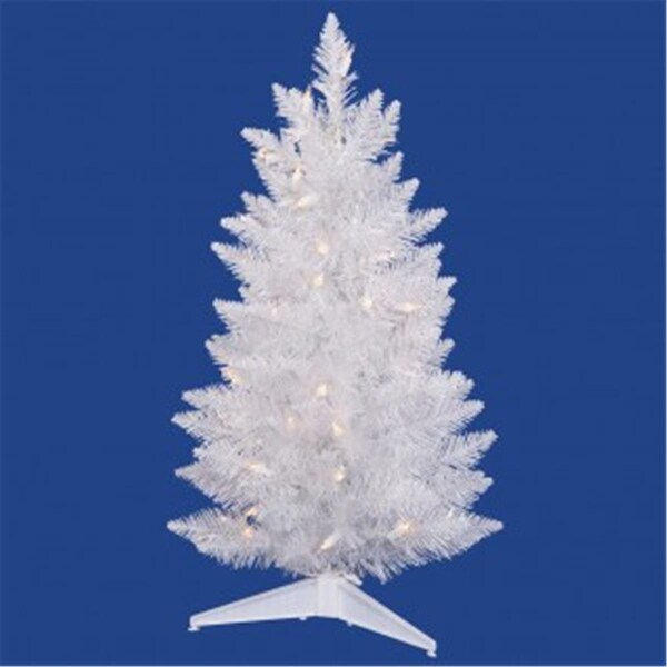 5 x 25 Sparkle White Spruce Pencil Tree 266 PVC Tips 150 LED Pure White Lights And White Colored Cord In Metal Stand .