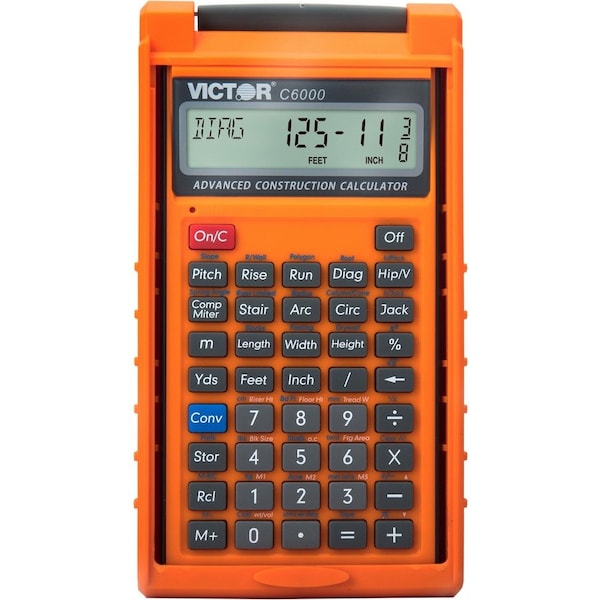Advanced Construction Calculator is a handy tool when you're working on construction projects and need to convert between dimensions like feet, inches and pounds is a critical need. It features the ability to solve a variety of construction-related equations, calculate material estimates and costs, and display results in fractional or decimal forms. Use it for diagonal, rafter and roofing equations (built-in) as well as stairway construction functions including circular calculations. This eight-digit calculator with fractions also estimates building materials needed to ensure costs aren't wasted. Calculate equations using U.S. Imperial units or the metric system. Protective, hardcover case is shock-resistant and spillproof. Calculator includes a protective case, pocket reference guide and full instructional manual with online examples available paired with a series of instructional videos.