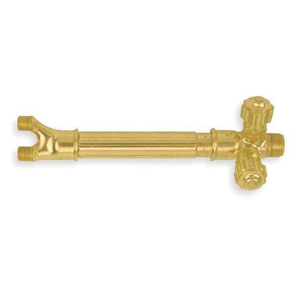 Torch Handle, Compatible Fuel Type Acetylene, Natural Gas, Propane, Propylene, Torch Series J-28, Hose Fitting Size A, Inlet Connection Size 3/8 In.-24, Overall Length 6 in, Inlet Connection Gender Male, Inlet Thread Direction Left Hand, Inlet Connection Type UNF, Weight 8.5 oz, Torch Style Victor, Compatible Heating Tip Series MFA-J, Compatible Welding and Brazing Tip Series DFE-J, FE-J, UN-J, W-J, Compatible Cutting Attachment CA 1260, Compatible Tip Tube ET-J, Body Material Brass