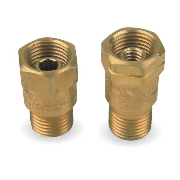 Reverse Flow Check Valve, Cto/Ctf Pair Pack, Mounting Location Torch, Compatible Gas Type Fuel, Oxygen, Inlet Connection Size 9/16 In.-18, Outlet Connection Size 9/16 In.-18, Inlet CGA Number (Fuel) CGA 023, Inlet CGA Number (Oxygen) CGA 022, Hose Fitting Size B, Body Material Brass, Inlet Connection Type UNF, Product Type Check Valve Set, Series CTO CTF