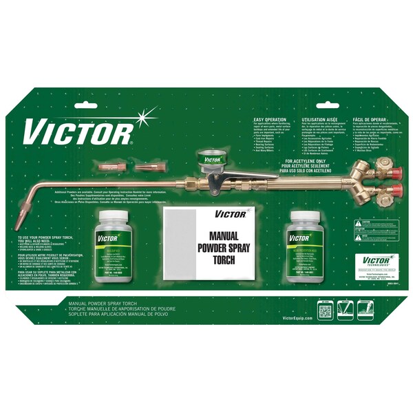 The Victor VPT-100 provides powder feed into the gas mixture. Deposit thickness is controlled by the powder flow rate of the torch.