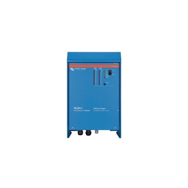 Skylla-IP44 24/30(3) 120-240V - The Skylla-IP44 (3) features 3 isolated outputs. All outputs can supply the full rated output current. Steel epoxy powder coated case and splash proof. Withstands the rigors of an adverse environment: heat, humidity and salt air. Circuit boards are protected with an acrylic coating for maximum corrosion resistance. Temperature sensors ensure that power components will always operate within specified limits, if needed by automatic reduction of output current under extreme environmental conditions. LCD display For status monitoring and to easily adapt the charge algorithm to a particular battery and its conditions of use. CAN bus interface (NMEA2000) To connect to a CAN bus network, to a Skylla-i Control panel or to the Color Control digital display. Synchronised parallel operation Several chargers can be connected in parallel and synchronised with help of the CAN bus interface. This is achieved by simply interconnecting the chargers with RJ45 UTP-cables. The right amount of charge for a lead-acid battery: variable absorption time When only shallow discharges occur the absorption time is kept short in order to prevent overcharging of the battery. After a deep discharge the absorption time is automatically increased to make sure that the battery is completely recharged. Preventing damage due to excessive gassing: the BatterySafe mode If, in order to quickly charge a battery, a high charge current in combination with a high absorption voltage has been chosen, the Skylla-IP44 will prevent damage due to excessive gassing by automatically limiting the rate of voltage increase once the gassing voltage has been reached. Less maintenance and aging when the battery is not in use: the Storage mode The Storage mode kicks in whenever the battery has not been subjected to discharge during 24 hours. In the storage mode float voltage is reduced to 2,2V/cell (26,4V for 24V battery) to minimise gassing and corrosion of the positive plates. Once a week the voltage is raised back to the absorption level to ‘refresh’ the battery. This feature prevents stratification of the electrolyte and sulphation, a major cause of early battery failure. To increase battery life: temperature compensation Every Skylla-IP44 comes with a battery temperature sensor.