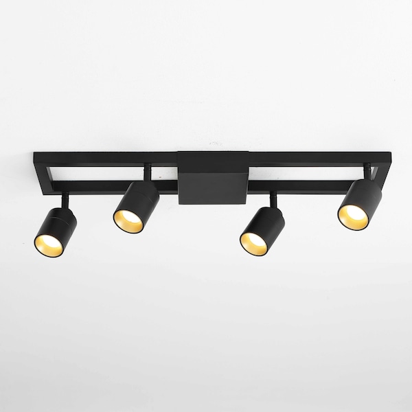Shura Black 4-Light Square Ceiling Light with Rotatable Heads, Integrated LED Bulbs, 3000k, 1820 Lmn