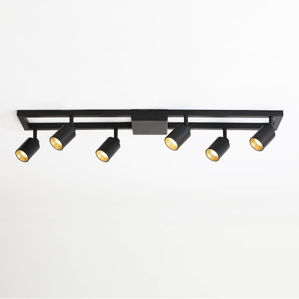 Shura Black 6-Light Square Ceiling Light with Rotatable Heads, Integrated LED Bulbs, 3000k, 1820 Lmn