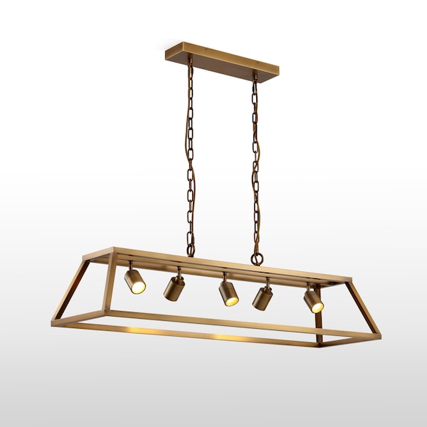 Shura Brushed Brass 5-Light Cage Pendant Light with Adjustable Heads, Integrated LED, 3000K, 2500L
