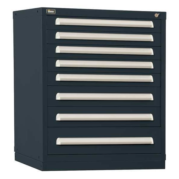 Modular Drawer Cabinet, Base Type Frame, Adjustable Dividers Yes, Cabinet Color Black, Cabinet Storage Components Drawers, Drawer Height 2 1/4 in, 3 7/8 in, 5 3/8 in, Includes Dividers Yes, Number of Compartments per Drawer (1) 16, (2) 20, (5) 24, Number of Dividers 176, Number of Drawers 8, Overall Depth 27 3/4 in, Overall Height 37 in, Overall Width 30 in, Mobility Stationary, Number of Compartments 176, Cabinet Finish Powder Coated, Cabinet Material Steel, Drawer Access Multiple