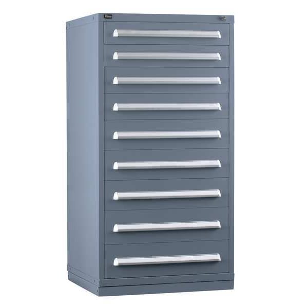 Modular Drawer Cabinet, Base Type Frame, Adjustable Dividers Yes, Cabinet Color Gray, Cabinet Storage Components Drawers, Drawer Height 3 7/8 in, 4 5/8 in, 5 3/8 in, 6 1/4 in, Includes Dividers Yes, Number of Compartments per Drawer (1) 24, (1) 8, (2) 12, (2) 20, (3) 16, Number of Dividers 144, Number of Drawers 9, Overall Depth 27 3/4 in, Overall Height 59 in, Overall Width 30 in, Mobility Stationary, Number of Compartments 144, Cabinet Finish Powder Coated, Cabinet Material Steel