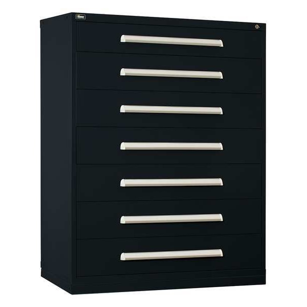 Modular Drawer Cabinet, Base Type Frame, Adjustable Dividers Yes, Cabinet Color Black, Cabinet Storage Components Drawers, Drawer Height 5 3/8 in, 7 in, Includes Dividers Yes, Number of Compartments per Drawer (1) 20, (6) 15, Number of Dividers 110, Number of Drawers 7, Overall Depth 27 3/4 in, Overall Height 59 in, Overall Width 45 in, Mobility Stationary, Number of Compartments 110, Cabinet Finish Powder Coated, Cabinet Material Steel, Drawer Access Multiple, Drawer Depth 5 3/8 in, 7 in