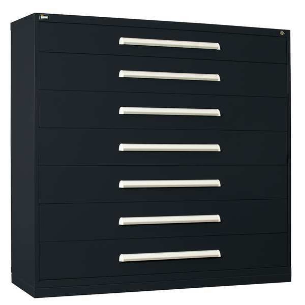 Modular Drawer Cabinet, Base Type Frame, Adjustable Dividers Yes, Cabinet Color Black, Cabinet Storage Components Drawers, Drawer Height 5 3/8 in, 7 in, Includes Dividers Yes, Number of Compartments per Drawer (1) 24, (6) 18, Number of Dividers 110, Number of Drawers 7, Overall Depth 27 3/4 in, Overall Height 59 in, Overall Width 60 in, Mobility Stationary, Number of Compartments 132, Cabinet Finish Powder Coated, Cabinet Material Steel, Drawer Access Multiple, Drawer Depth 5 3/8 in, 7 in