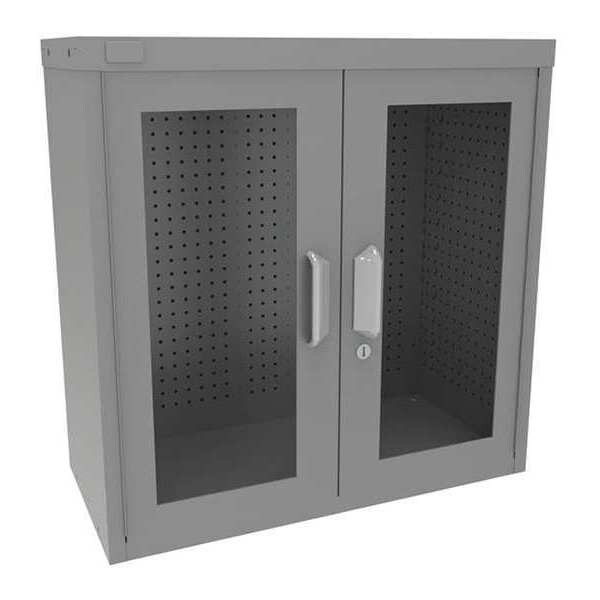 Pegboard Wall Cabinet, Frame Assembled Assembled, Cabinet Color Gray, Cabinet Storage Components Pegboard, Door Handle Type Pull, Door Type Clearview, Overall Depth 14 in, Overall Height 30 in, Overall Width 30 in, Pegboard Height 30 in, Pegboard Width 30 in, Peg Hole Shape Round, Mounting Location Wall, Cabinet Material Steel, Includes Mounting Hardware No, Lock Type Keyed, Panel Material Thickness 20 ga, Door Locking Points 2, Duty Rating Medium Duty, Method of Construction Welded