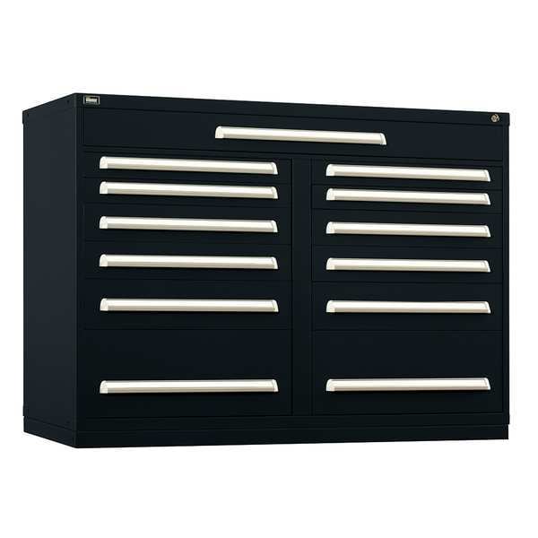 Modular Drawer Cabinet, Base Type Frame, Adjustable Dividers Yes, Cabinet Color Black, Cabinet Storage Components Drawers, Drawer Height 2 1/4 in, 3 7/8 in, 5 3/8 in, 10 1/8 in, Includes Dividers Yes, Number of Compartments per Drawer (1) 28, (2) 12, (2) 20, (2) 30, (2) 8, (4) 16, Number of Dividers 232, Number of Drawers 13, Overall Depth 27 3/4 in, Overall Height 44 in, Overall Width 60 in, Mobility Stationary, Number of Compartments 232, Cabinet Finish Powder Coated, Cabinet Material Steel