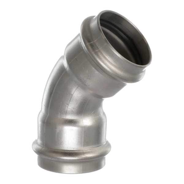 Crimp Elbow Fitting, Application Potable Water, Fitting Side A Connection Type Press-Fit, Fitting Side B Connection Type Press-Fit, Fitting Side A Copper Tube Size 1 1/4 in, Fitting Side B Copper Tube Size 1 1/4 in, Fitting Material Stainless Steel, Material Grade 316, O-Ring Material EPDM, Specific Fitting Shape 45 Degrees Elbow, Number of Bolt Holes Not Applicable, Flange Thickness Not Applicable, Compatible Tube Hardness Not Applicable, Compatible Tube Material Not Applicable