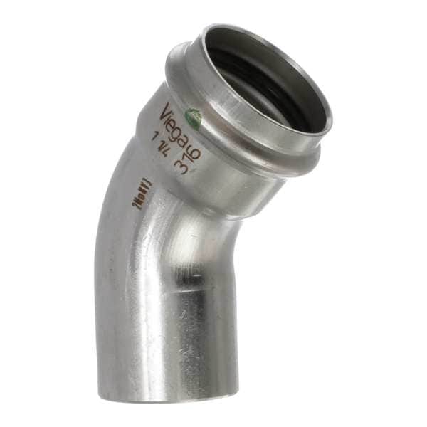 Crimp Elbow Fitting, Application Potable Water, Fitting Side A Connection Type Press-Fit, Fitting Side B Connection Type FTG, Fitting Side A Copper Tube Size 1 1/4 in, Fitting Side B Copper Tube Size 1 1/4 in, Fitting Material Stainless Steel, Material Grade 316, O-Ring Material EPDM, Specific Fitting Shape 45 Degrees Street Elbow Adapter, Number of Bolt Holes Not Applicable, Flange Thickness Not Applicable, Compatible Tube Hardness Not Applicable, Compatible Tube Material Not Applicable