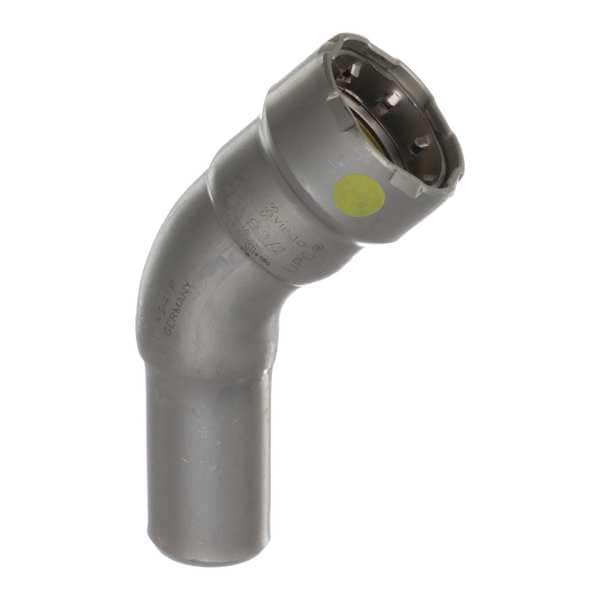 Crimp Elbow Fitting, Application Gas and Fuel Oil, Fitting Side A Connection Type Press-Fit, Fitting Side B Connection Type FTG, Fitting Side B Copper Tube Size 1/2 in, Fitting Material Carbon Steel, Fitting Side A Pipe Size 1/2 in, O-Ring Material HNBR, Specific Fitting Shape 45 Degrees Street Elbow Adapter, Finish/Coating Zinc Nickel-Plated, Number of Bolt Holes Not Applicable, Flange Thickness Not Applicable, Maximum Operating Pressure 200 psi, Maximum Operating Temperature 250 Degrees F