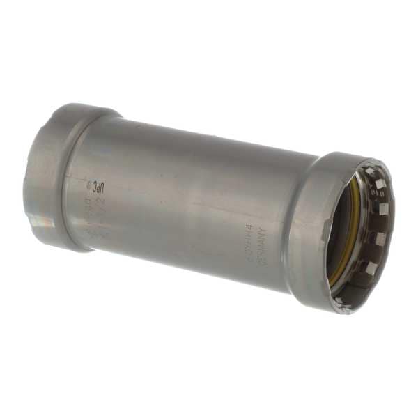 Crimp Coupling Fitting, Application Gas and Fuel Oil, Fitting Side A Connection Type Press-Fit, Fitting Side B Connection Type Press-Fit, Fitting Material Carbon Steel, Fitting Side A Pipe Size 1 1/2 in, Fitting Side B Pipe Size 1 1/2 in, O-Ring Material HNBR, Specific Fitting Shape Straight Extended Connector, Finish/Coating Zinc Nickel-Plated, Overall Length 5 15/32 in, Number of Bolt Holes Not Applicable, Flange Thickness Not Applicable, Maximum Operating Pressure 200 psi