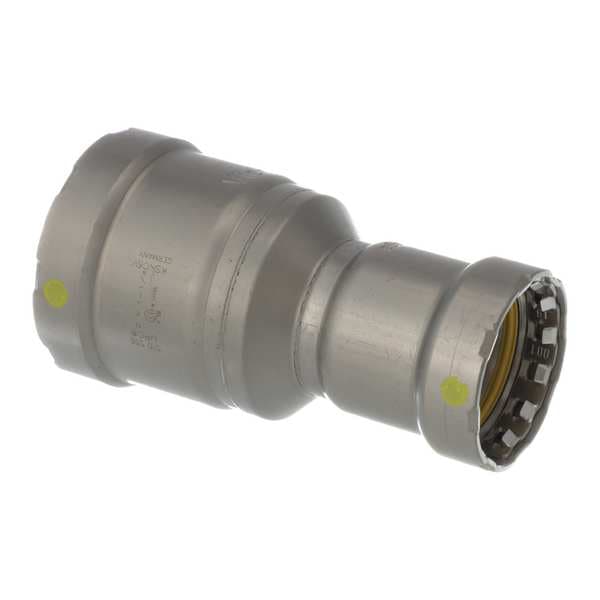 Crimp Fitting, Application Gas and Fuel Oil, Fitting Side A Connection Type Press-Fit, Fitting Side B Connection Type Press-Fit, Fitting Material Carbon Steel, Fitting Side A Pipe Size 2 in, Fitting Side B Pipe Size 1 1/4 in, O-Ring Material HNBR, Specific Fitting Shape Straight Reducing Connector, Finish/Coating Zinc Nickel-Plated, Overall Length 5 9/32 in, Number of Bolt Holes Not Applicable, Flange Thickness Not Applicable, Maximum Operating Pressure 200 psi