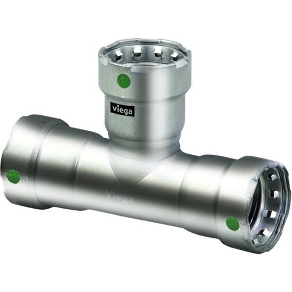 Crimp Tee Fitting, Application Potable Water, Fitting Side A Connection Type Press-Fit, Fitting Side B Connection Type Press-Fit, Fitting Side C Connection Type Press-Fit, Fitting Material Stainless Steel, Fitting Side A Pipe Size 1 1/4 in, Fitting Side B Pipe Size 1 1/4 in, Fitting Side C Pipe Size 1 1/4 in, Material Grade 316, O-Ring Material EPDM, Specific Fitting Shape Tee, Overall Length 6 17/32 in, Maximum Operating Pressure 200 psi, Maximum Operating Temperature 250 Degrees F