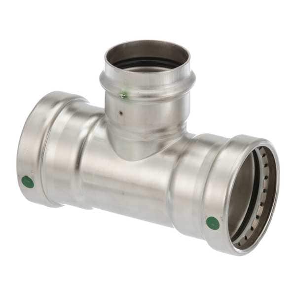 Crimp Tee Fitting, Application Potable Water, Fitting Side A Connection Type Press-Fit, Fitting Side B Connection Type Press-Fit, Fitting Side C Connection Type Press-Fit, Fitting Side A Copper Tube Size 2 1/2 in, Fitting Side B Copper Tube Size 2 1/2 in, Fitting Side C Copper Tube Size 2 in, Fitting Material Stainless Steel, Material Grade 316, O-Ring Material Rubber, Specific Fitting Shape Reducing Tee, Fitting Side A Tube Outer Diameter 2 1/2 in, Fitting Side B Tube Outer Diameter 2 1/2 in