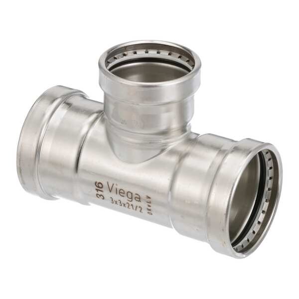 Crimp Tee Fitting, Application Potable Water, Fitting Side A Connection Type Press-Fit, Fitting Side B Connection Type Press-Fit, Fitting Side C Connection Type Press-Fit, Fitting Side A Copper Tube Size 3 in, Fitting Side B Copper Tube Size 3 in, Fitting Side C Copper Tube Size 2 1/2 in, Fitting Material Stainless Steel, Material Grade 316, O-Ring Material Rubber, Specific Fitting Shape Reducing Tee, Fitting Side A Tube Outer Diameter 3 in, Fitting Side B Tube Outer Diameter 3 in