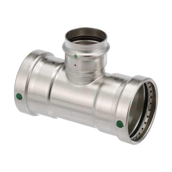 Crimp Tee Fitting, Application Potable Water, Fitting Side A Connection Type Press-Fit, Fitting Side B Connection Type Press-Fit, Fitting Side C Connection Type Press-Fit, Fitting Side A Copper Tube Size 3 in, Fitting Side B Copper Tube Size 3 in, Fitting Side C Copper Tube Size 2 in, Fitting Material Stainless Steel, Material Grade 316, O-Ring Material Rubber, Specific Fitting Shape Reducing Tee, Fitting Side A Tube Outer Diameter 3 in, Fitting Side B Tube Outer Diameter 3 in