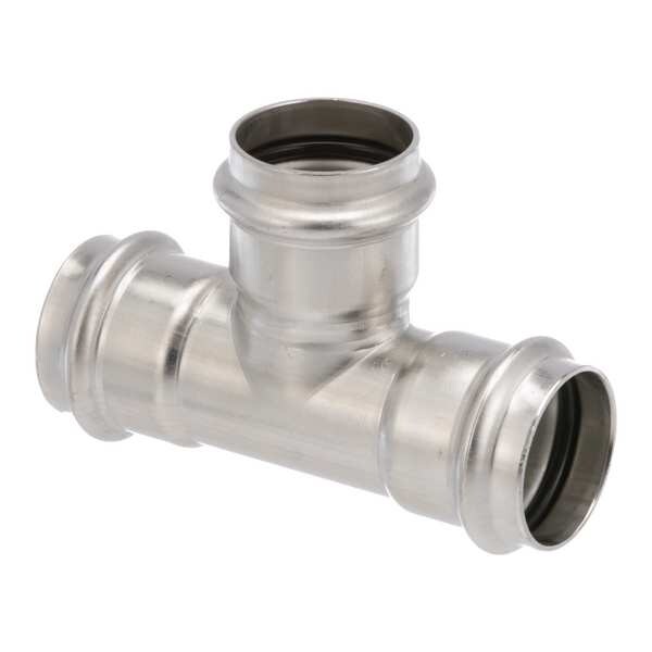 Crimp Tee Fitting, Application Potable Water, Fitting Side A Connection Type Press-Fit, Fitting Side B Connection Type Press-Fit, Fitting Side C Connection Type Press-Fit, Fitting Side A Copper Tube Size 1 1/2 in, Fitting Side B Copper Tube Size 1 1/2 in, Fitting Side C Copper Tube Size 1 1/2 in, Fitting Material Stainless Steel, Material Grade 316, O-Ring Material Rubber, Specific Fitting Shape Tee, Fitting Side A Tube Outer Diameter 1 1/2 in, Fitting Side B Tube Outer Diameter 1 1/2 in