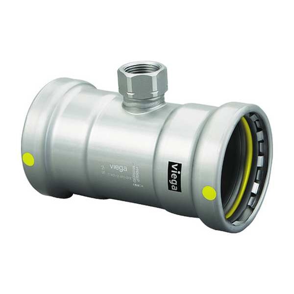 Crimp Tee Fitting, Application Fuel Oil, Gas, Fitting Side A Connection Type Press-Fit, Fitting Side B Connection Type Press-Fit, Fitting Side C Connection Type FPT, Fitting Material Carbon Steel, Fitting Side A Pipe Size 2 1/2 in, Fitting Side B Pipe Size 2 1/2 in, Fitting Side C Pipe Size 3/4 in, O-Ring Material Rubber, Specific Fitting Shape Adapter Tee, Finish/Coating Zinc Nickel-Plated, Overall Length 6 5/16 in