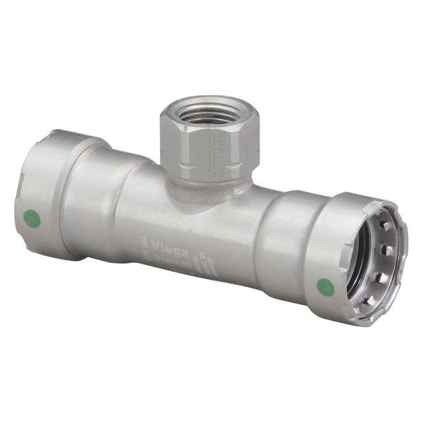 Crimp Tee Fitting, Application Air, Non-Potable Water, Fitting Side A Connection Type Press-Fit, Fitting Side B Connection Type Press-Fit, Fitting Side C Connection Type FPT, Fitting Material Steel, Fitting Side A Pipe Size 2 in, Fitting Side B Pipe Size 2 in, Fitting Side C Pipe Size 1 in, O-Ring Material EPDM, Specific Fitting Shape Adapter Tee, Finish/Coating Zinc Nickel-Plated, Overall Length 7 9/16 in, Maximum Operating Pressure 200 psi, Maximum Operating Temperature 250 Degrees F