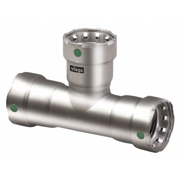 Crimp Tee Fitting, Application Potable Water, Fitting Side A Connection Type Press-Fit, Fitting Side B Connection Type Press-Fit, Fitting Side C Connection Type Press-Fit, Fitting Material Stainless Steel, Fitting Side A Pipe Size 2 in, Fitting Side B Pipe Size 2 in, Fitting Side C Pipe Size 2 in, Material Grade 316, O-Ring Material EPDM, Specific Fitting Shape Tee, Overall Length 7 9/16 in, Maximum Operating Pressure 200 psi, Maximum Operating Temperature 250 Degrees F