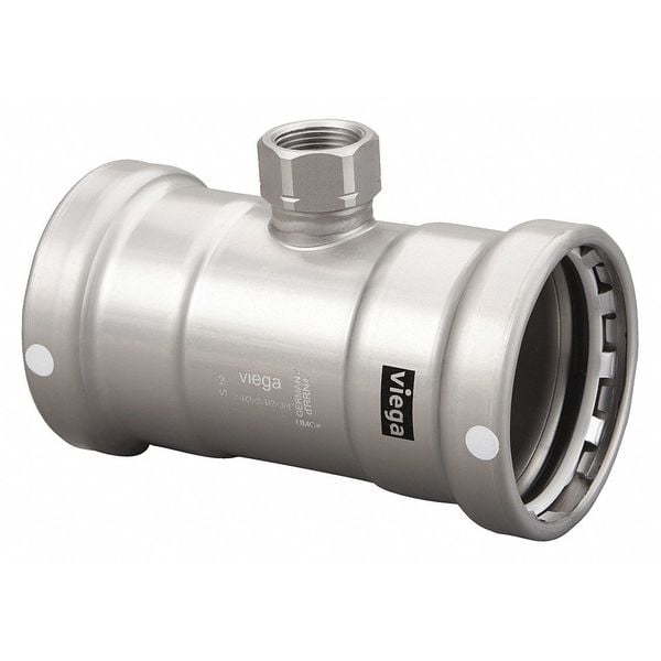 Crimp Tee Fitting, Application Non-Potable Water, Fitting Side A Connection Type Press-Fit, Fitting Side B Connection Type Press-Fit, Fitting Side C Connection Type FPT, Fitting Material Steel, Fitting Side A Pipe Size 3 in, Fitting Side B Pipe Size 3 in, Fitting Side C Pipe Size 3/4 in, O-Ring Material FKM, Specific Fitting Shape Adapter Tee, Finish/Coating Zinc Nickel-Plated, Overall Length 7 15/32 in, Maximum Operating Pressure 200 psi, Maximum Operating Temperature 284 Degrees F