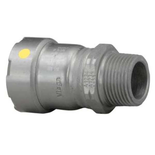 Crimp Adapter Fitting, Application Air, Fuel, Natural Gas, Fitting Side A Connection Type Press-Fit, Fitting Side B Connection Type MNPT, Fitting Material Steel, Fitting Side A Pipe Size 1 in, Fitting Side B Pipe Size 1 in, O-Ring Material HNBR, Specific Fitting Shape Straight Adapter, Finish/Coating Zinc Nickel-Plated, Overall Length 3 in, Number of Bolt Holes Not Applicable, Flange Thickness Not Applicable, Maximum Operating Pressure 125 psi, Maximum Operating Temperature 180 Degrees F