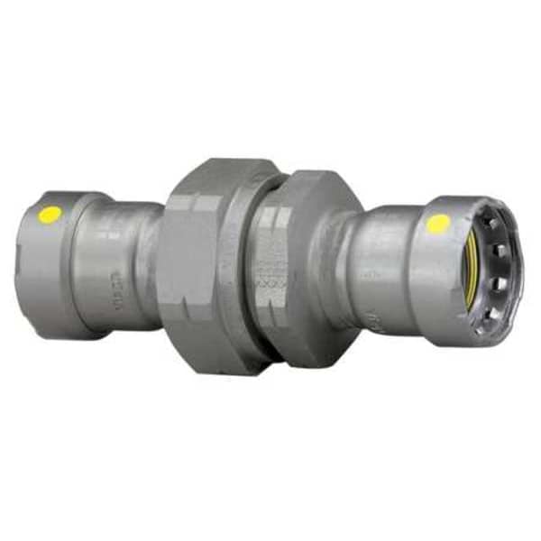 Crimp Union Fitting, Application Air, Fuel, Natural Gas, Fitting Side A Connection Type Press-Fit, Fitting Side B Connection Type Press-Fit, Fitting Material Steel, Fitting Side A Pipe Size 1/2 in, Fitting Side B Pipe Size 1/2 in, O-Ring Material HNBR, Specific Fitting Shape Straight Union, Finish/Coating Zinc Nickel-Plated, Overall Length 4 15/32 in, Number of Bolt Holes Not Applicable, Flange Thickness Not Applicable, Maximum Operating Pressure 125 psi