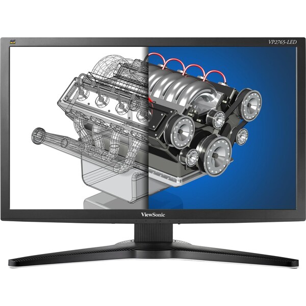 The VIEWSONIC Vp2765-Led is a 27" LED monitor with a 15.4" height, 25.3" width, and 2.6" depth. It has a contrast ratio of 20,000,000:1, an aspect ratio of 1899-12-30, a black color, and a brightness of 300 Nit. It is a LCD monitor.