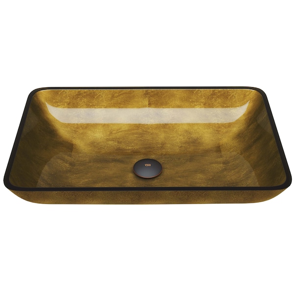 Donatello Gold Glass 22 in. L x 14 in. W x 5 in. H Rectangular Vessel Bathroom Sink