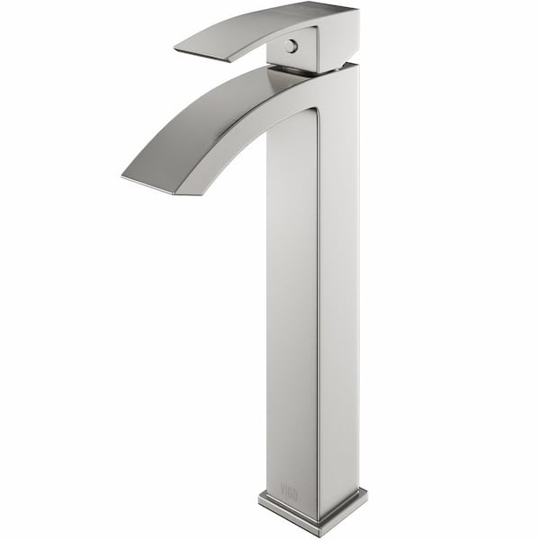 Elevate your bathroom's aesthetic with this VIGO Duris 1-hole brushed nickel vessel bathroom sink faucet, a stunning blend of form and function. Standing at an impressive 12-in. tall with a sleek 2-in. diameter, this faucet commands attention while maintaining a sophisticated profile. The graceful curved spout, reaching 5-in., creates a beautiful arc of water, adding a touch of elegance to your daily routine. Crafted with precision, the faucet features clean lines and a minimalist design that complements various bathroom styles, from modern to transitional. The single-handle operation offers effortless control over water temperature and flow, while the durable construction ensures long-lasting performance. Perfect for vessel sinks, this faucet becomes a focal point in your bathroom, enhancing the overall decor and creating a luxurious atmosphere. Available in versatile finishes including Brushed Nickel, Chrome, Matte Black, and Matte Brushed Gold, this faucet allows you to personalize your space while enjoying its timeless elegance and superior functionality.