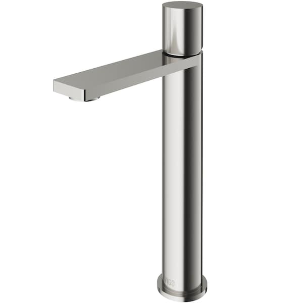 Elevate your bathroom's style with this VIGO Gotham 1-hole brushed nickel vessel bathroom sink faucet, a perfect blend of form and function. Standing at 12-in. tall with a sleek 2-in. diameter, this faucet boasts a contemporary design that will transform your vanity into a modern masterpiece. The elongated spout, reaching 5-in., provides ample space for comfortable hand-washing and creates a striking silhouette. Its minimalist lever handle offers effortless temperature and flow control, while the high-quality construction ensures durability and longevity. This faucet not only enhances your bathroom's aesthetic but also improves its functionality, making every interaction a luxurious experience. Available in Brushed Nickel, Chrome, Matte Black, and Matte Brushed Gold finishes, this versatile faucet complements a wide range of bathroom decor styles, from classic to ultra-modern.