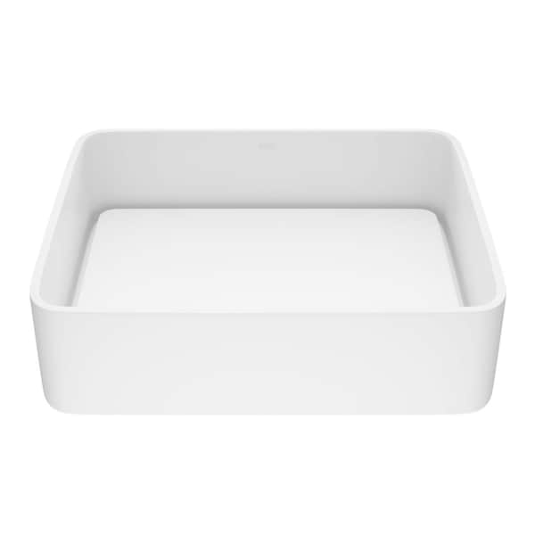 Jasmine Modern White Matte Stone 18 in. L x 15 in. W x 5 in. H Rectangular Vessel Bathroom Sink