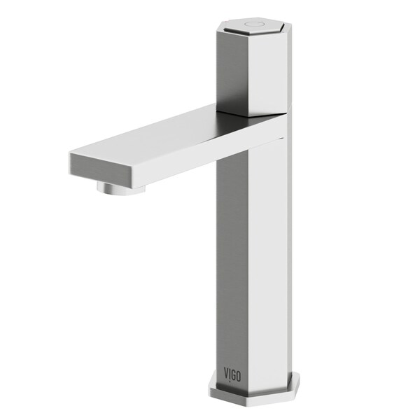 Elevate your bathroom's style with the VIGO Nova 1-hole brushed nickel bathroom sink faucet that combines modern design with exceptional functionality. Standing at 8-in. tall with a 4-in. spout reach, this sleek faucet features clean lines and a geometric hexagonal handle that adds a touch of contemporary elegance to any sink. The robust construction ensures durability, while the smooth operation of the single-handle design provides effortless control over water temperature and flow. With a water-saving 1.2 GPM flow rate, this eco-friendly faucet helps conserve resources without compromising performance. The 2-in. diameter base creates a stable foundation, complementing the faucet's striking silhouette. Easy to install and maintain, this VIGO faucet is perfect for updating your bathroom's aesthetic while enhancing its functionality. Available in versatile finishes including Brushed Nickel, Chrome, Matte Black, and Matte Brushed Gold, this faucet allows you to perfectly match your bathroom's decor and personal style.