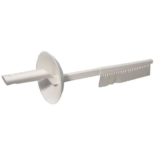 Scrub Brush, Bristle Firmness Medium, Handle Style Fencing, Bristle Material Polyester, Handle Material Plastic, Brush Length 20 in, Handle Length 4 3/4 in, Head Width 5 1/2 in, Bristle Color White, Overall Length 18 7/8 in, Chemical Resistant Yes, Bristle Length 2 in, Brush Type Blade Cleaning Brush, Features Safety Guard, Handle Color White, Surface Type Dry, Wet, Temperature Resistant Yes, FDA Compliant Yes, Acid Resistant Yes, Color Coding System Yes